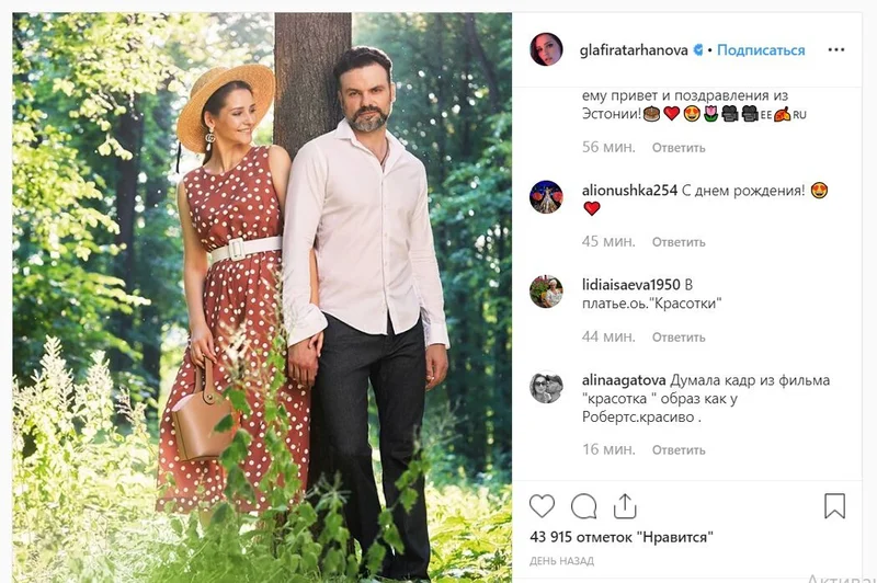 Глафира Тарханова показала снимок с мужем Артистка выложила редкий кадр и мужем и поздравила любимого с днем рождения.