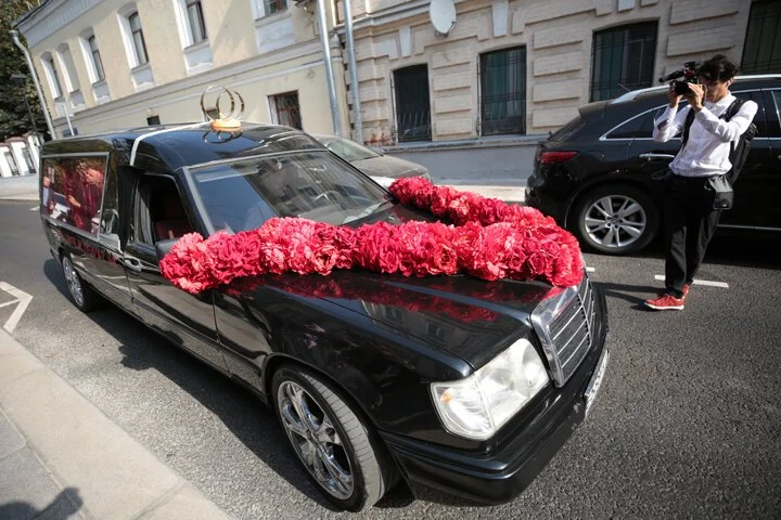 Катафалк для свадьбы Ксения Собчак и Константин Богомолов приехали в ЗАГС на катафалке , Шоу-бизнес