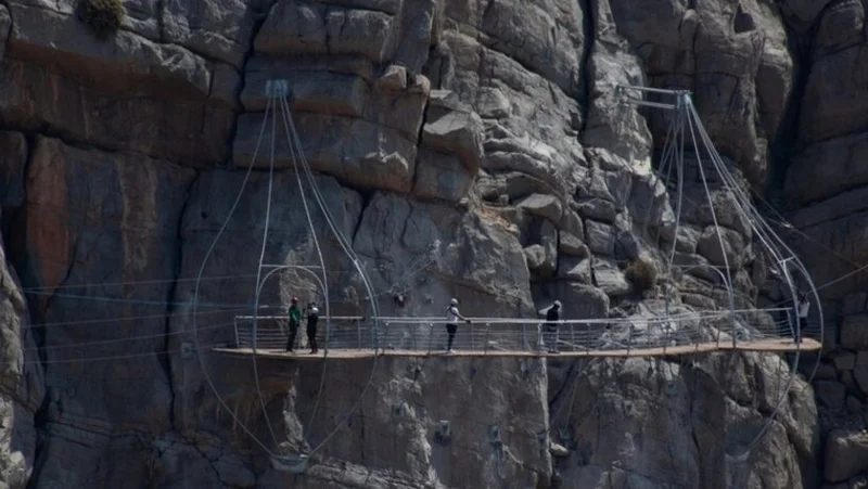 Мост для экстремалов появился в Арабских Эмиратах «Небесный» мост протяженностью 15 метров подвешен на высоте 1,25 км над уровнем моря. Его соорудили для любителей «пощекотать нервы». , Путешествия