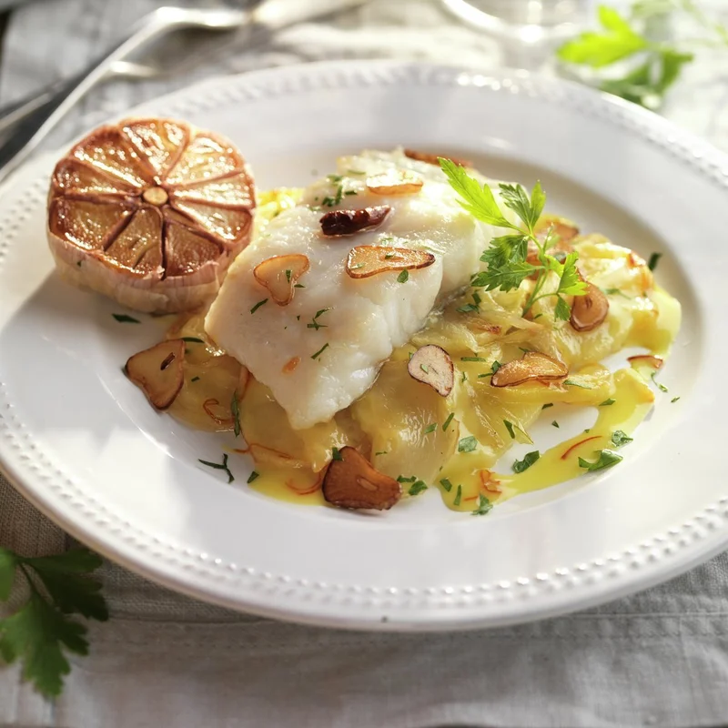 Запеченная треска с картофелем, традиционная и легкая Запеченная треска всегда вкусна, но если приготовить ее с картофелем, луком, обжаренным чесноком и небольшим количеством белого вина, результат будет впечатляющим. , Еда и рецепты