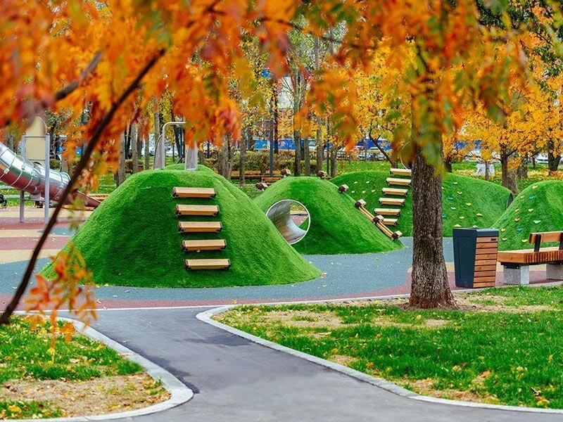 В одном из районов Москвы появилась норка хоббитов и десятиметровая горка Игровая зона в местном сквере стала настоящим хитом. , Новости