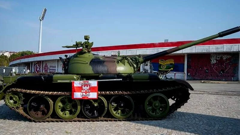 Танк у стадиона в Белграде Минувшей ночью неизвестные разместили танк Т-55 возле стадиона имени Райко Митича белградской футбольной команды «Црвена звезда» , Спорт
