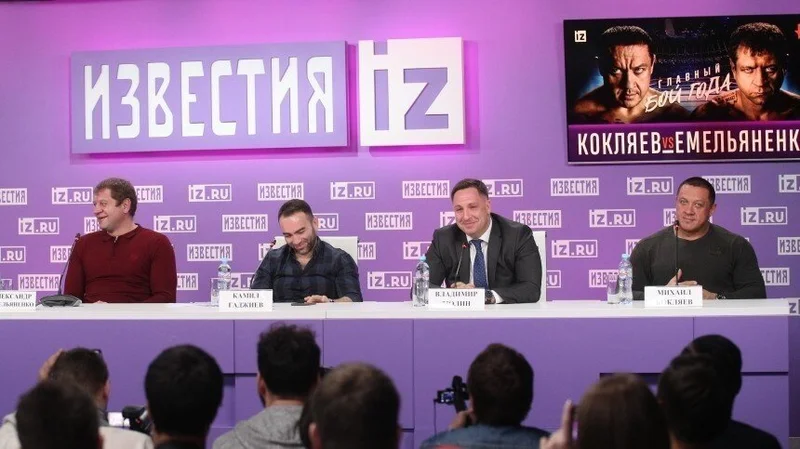 Емельяненко вручил Кокляеву подарок Участники битвы года Александр Емельяненко и Михаил Кокляев встретились накануне на пресс-конференции. , Спорт