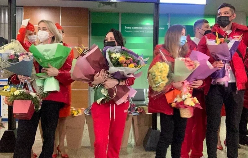 Болельщики торжественно встретили российских фигуристов в московском аэропорту В аэропорту Шереметьево сборную России по фигурному катанию встречали под национальный гимн. , Спорт